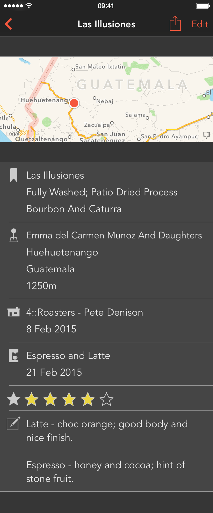 A future post will look at a new app for tracking coffees and their origins – Press. For now, a couple of sample images after putting in the Las Illusiones as the first record: