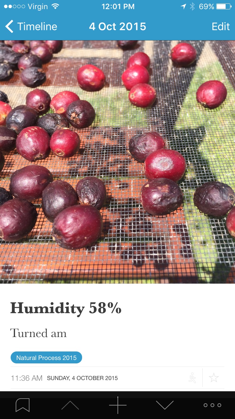 Regardless of which system I use, there is the requirement for some sort of “Additional Comments” section, and it is here I will simply add the humidity reading (easily obtained with one tap from the best iOS local weather app there is: Pocket Weather Australia), along with information on how often I turn the drying beans (hint — it’ll be often), and anything additional worth commenting on for that particular day.