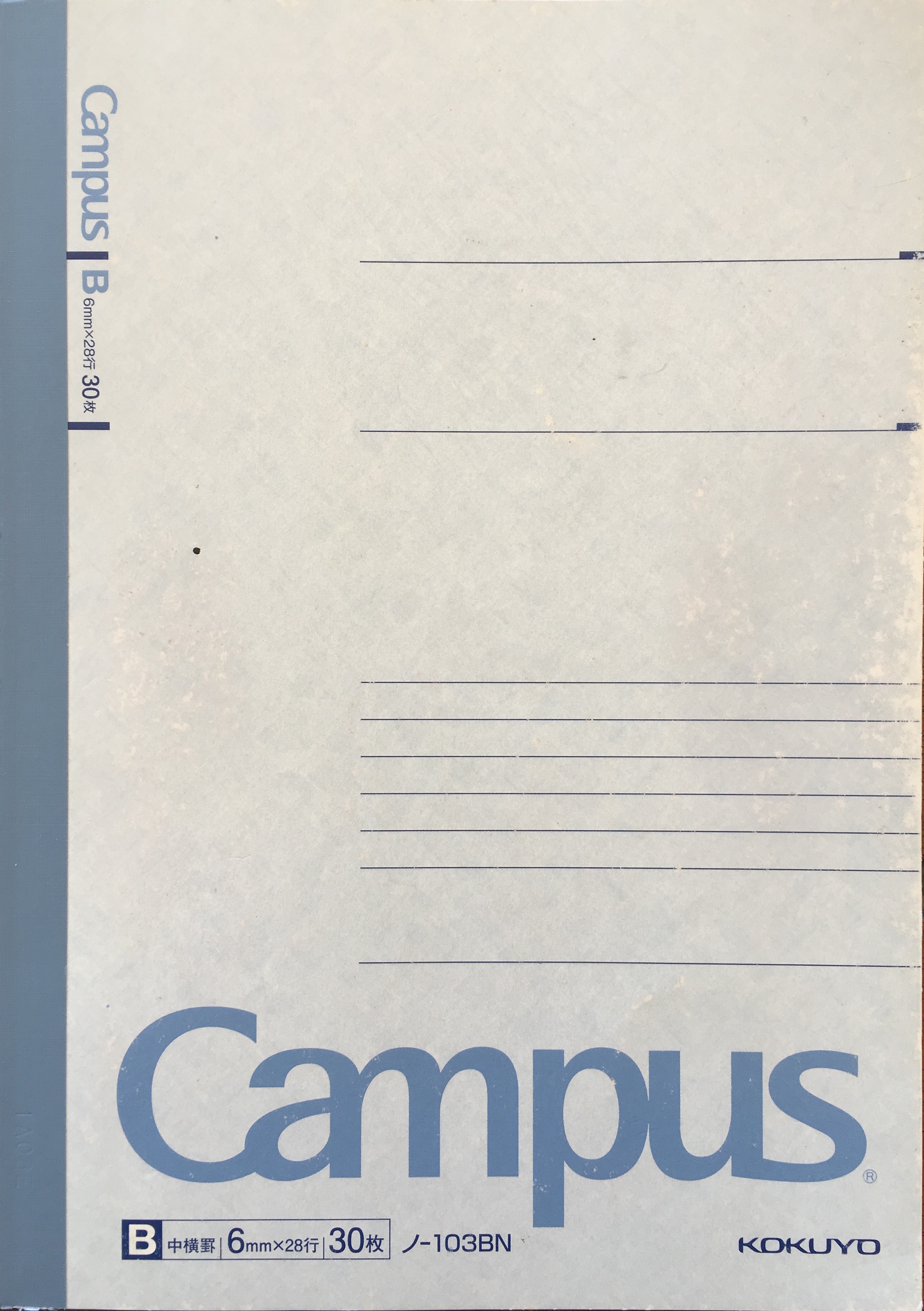 2016-07-10 campus_cover_blog_postThis notebook has been in daily use for the past month or so, and performed extremely well at the task. As you can see the cover is a little worn. “Daily use” generally involves blog post drafts, coffee tasting notes, general notes or song lyrics rewritten to test out a pen or ink. Many and varied content, however a common theme being longhand writing — often several pages at a time.