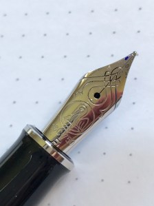 The aion series of fountain pens are fitted with a steel mono colour nib in silver, which although very similar, is a departure from the usual form, as you can see from the comparison image below.